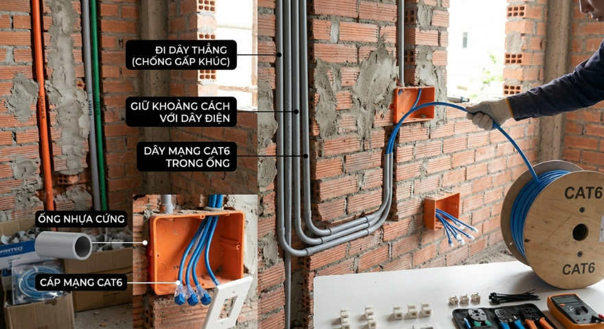 Trong thời đại công nghệ số, một ngôi nhà hiện đại không chỉ cần hệ thống điện nước thông minh mà còn cần một hạ tầng mạng mạnh mẽ. Việc tối ưu: cách đi dây mạng âm tường ngay từ công đoạn xây dựng sẽ giúp bạn tránh được tình trạng dây cáp lằng nhằng. Đồng thời đảm bảo tốc độ internet đạt mức tối đa.